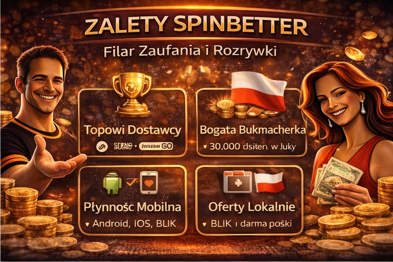 Wybór kasyna online to decyzja, która powinna opierać się na trzech filarach: różnorodności, bezpieczeństwie i przejrzystości. Platforma SpinBetter buduje swoją pozycję właśnie na tej triadzie, oferując graczom z Polski skonsolidowane środowisko, gdzie Spin Better oznacza zarówno ekscytację wysokiej jakości grami, jak i spokój wynikający z pewnych transakcji w złotówkach. To propozycja dla tych, którzy nie chcą się ograniczać — jednego dnia mogą eksplorować nowe sloty, a drugiego analizować kursy przed wielkim meczem, wszystko w ramach jednego konta.